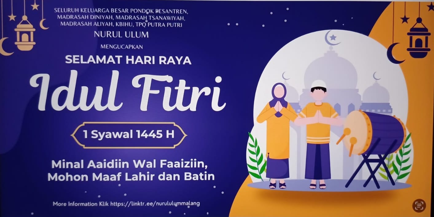 Kami atas nama PonPes @nurululummalang , Madrasah Diniyah @nurululumputra @ponpesnurululumputri @mtsnurululum.malangkota , @manurululum.malangkota , @tpqnurululummalang dan @kbihu_nurul.ulum mengucapkan Selamat berIdul Fitri minal 'Aidzin wal Faizin Taqobbalallahu minna wa Minkum Taqobal Ya Karim Kullu 'Aamin wa Antum bi Khoir mohon maaf atas salah dan khilaf, ucapan, tindak tanduk, prilaku yang kurang berkenan & berharap hari fitri ini menjadikan semangat ibadah kita lebih baik.